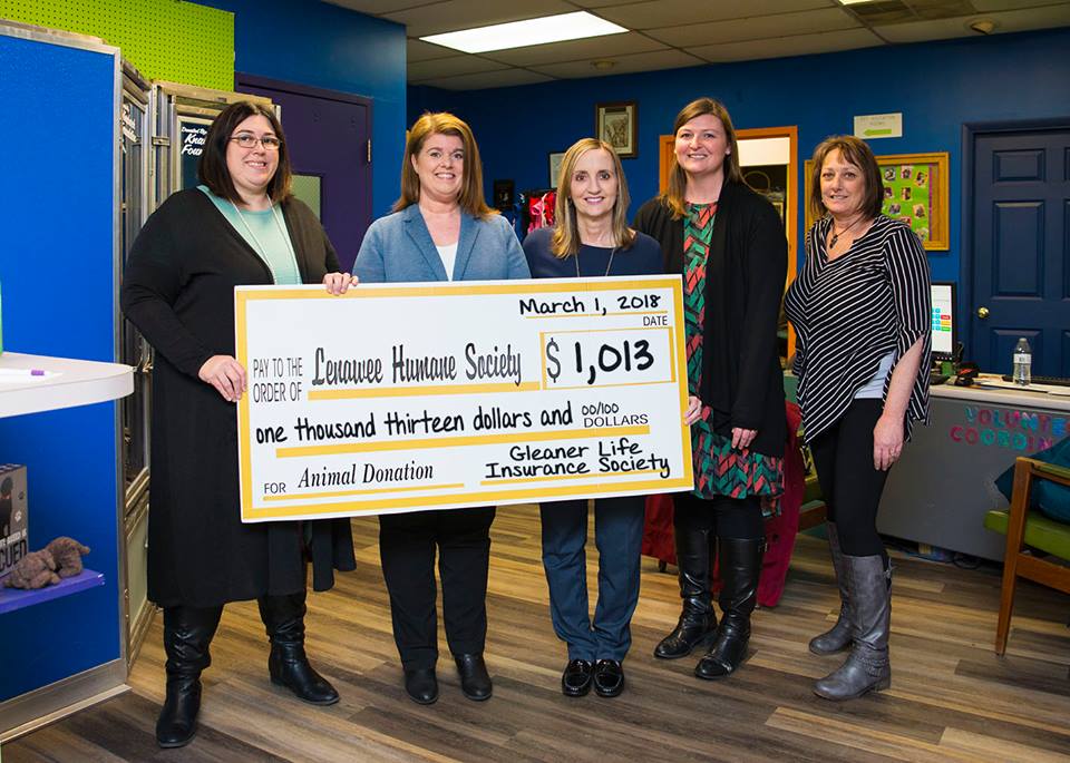 “Gleaner Life employees recognize the fiscal challenges nonprofit organizations like the Lenawee Humane Society face as they provide invaluable service to the community. That’s why our employees enjoy raising money to help,” says Elliott. Once a month, Gleaner employees participate in “Casual for a Cause” day where they donate money in exchange for wearing jeans.